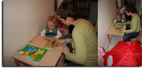 Güzel güzel uyuduktan sonra 36@IKEA yı unutup Erin’e kafaya taktığım masayı almaya gittik.Cehennemin içine düşmüş gibiydik. Aldık masayı ve terk ettik orayı. Masayı babasıyla beraber – gerçekten beraber 😀 elinde tornavida- ucu olmayan sapı- tahtalara vura vura – monte eden pi-nik’im koca adam gibi geçti sandalyenin üstüne dergisini karıştırmaya başladı. Sanırım dişlerden birini patlattı ve bunun rahatlığı ile sabah 10’a kadar uyuyan veledim uyanır uyanmaz masanın başına uçtu ve sanırım masa aşkına kahvaltısının tamamını yedi!! Bu masa işini çok sevdik yani.
