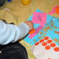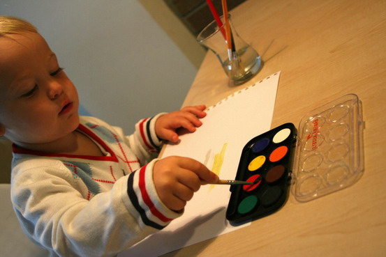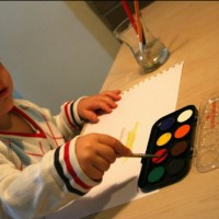 Bu hafta sanat aktivitelerine suluboya ekledik.. fırçayı suya batırıp boyaya süreceği ile ilgili süpheleri oldu Erin’in 🙂 parmağıyla devam etmeyi tercih etti 🙂 Oyun grubunda ise elişine el attık. Önce pek ilgisini çekmese de sonra çıkartmalar biraz ilgisini çekti.