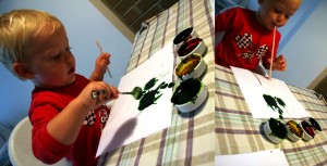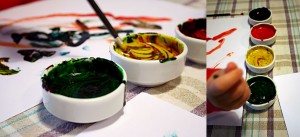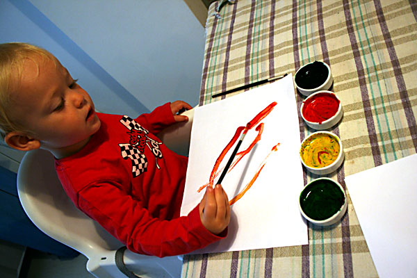 en son geçen gün un-su ve gıda boyaları ile oluşturduğum boyalar ile fırça kullanmayı öğrendi Erin.