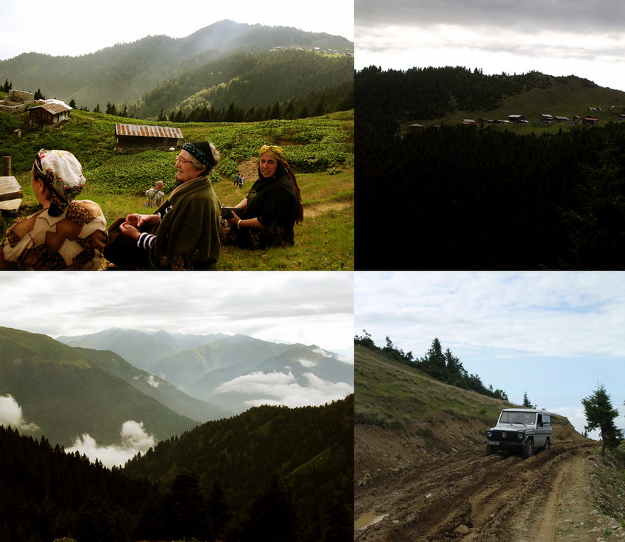 Amacımız Zir Kaleye gitmekti. Önce Çamlıhemşin’e indik. Bu sefer yolun sağından devam ederek Şenyuva ( Çinçiva ) köyüne geldik. Daha önce bize tavsiye edilen Pokut yaylasını haritada görünce “hadi çıkıp bakalım “ diyerek bize “araba çıkmaz ama sizinki belki çıkar” denilen yola direksiyon kırdık. Yol başta çok düzgündü. Yukarı çıktıkça derin çamurlarla karşılaştık ; çamur inatlaştı biz inatlaştı. Solumuz yamaç sağımız uçurum ortamız çamur inatlaşarak 2 saatte 11 km yolu çıktık. Oldukça gerilimli bir yolculuk oldu yukarıya kadar. Arazi aracı yoksa ya yürüyerek ya da nereden yolcu aldığını bilmediğim unimoglar ile çıkmak gerekiyor. Ama bu yaylaya çıkılmalı!!