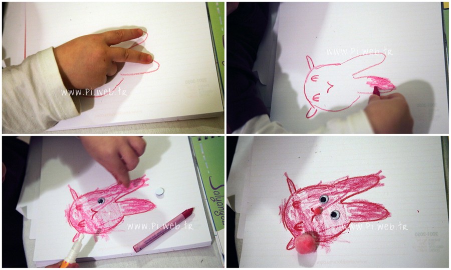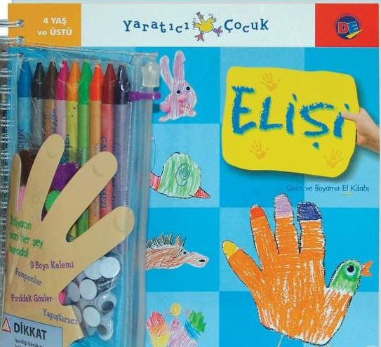 Çıkarken iki kitap aldık. Hemen heyecanla eve gelip işe koyulduk. Luli TV de bir ablamız var bizim, program başladımı “aa benimki başladı” diye Erin’e heyecan yaşatan bir abla. Atık materyallerden çeşitli el işleri yapıyor. En çok elinin iziyle yaptığı hayvanları severiz biz hatta artık hangi el ile ne yapıldığını bile öğrenmiş durumdayız ama yine de Yaratıcı Çocuk El işi kitabını ve bir de ponpon hayvanlısını almaktan kendimi alıkoyamadım.