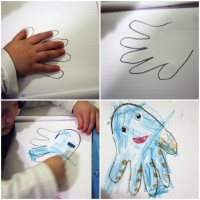 Bir ahtapot. Eli çizdikten sonra ters çevirip kafasını tamamlayın. İçini boyayıp gözlerini yapıştırın ya da çizin:=)