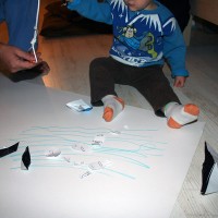 Sonra bir kağıdın üzerine anneannenin yaptığı kağıttan kayıkların yüzebileceği bir denizin içine balıklar bırakılır..