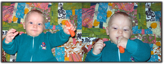 Bugün ayrıca şu finger food olayına değindim.. sabah kahvaltıyı reddedip meyvayı da püskürtünce kestim bir kalın dilim elma verdim eline : BAYILDI.. hem dişini kaşıdı hem suyunu emdi bende bayıldım bu işe.. bundan cesaret ile ben iş yaparken bir havuç tutturdum..tabii gözlerim üzerinde takip halinde.