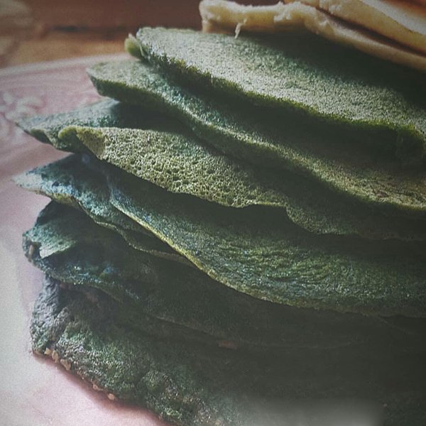 Hepsini rondoda sıvı hale getirip önceden ısınmış krep tavasında pişiriyorsun.Yeşil yeşil minik krepler çıkıveriyor ortaya. Krem peynir olabilir arasına. Biz keçi peyniri tüketiyoruz onunla da enfes oldu.
