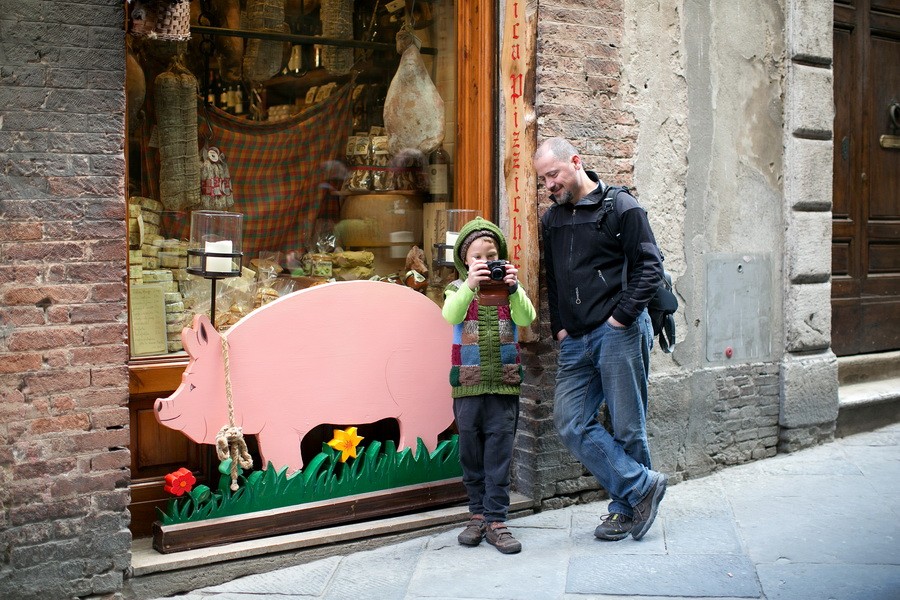 Mimari olarak hayran kalıyorsun bir kere ancak yanındaki 7 yaşındaki çocuk her zaman ilk bir kaç gün seni kemirmeye meraklıysa sinirden gezecek hal kalmıyor. İlk dakikalar iyi de olsa birden saçmalama ve beni benden alma durumu ile karşı karşıya kaldım. Neyse ki bir dondurmacı bulduk. En büyük şanssızlık mevsim itibariyle büyük şehirlere gitmediğimiz için sezonun açılmamış olmasıydı tüm gezi boyunca. Siena’dan daha küçük yerleşim yerlerine gittiğimizde dondurmadan daha büyük bir sorun yemek yeme yerleri bulmak. Bir de yemekler saatli arkadaş! 19:30 dan önce hiç bir restorant açılmıyor benim biyolojik yeme saatlerim tamamen şaştı. Nereye girsek dondurma diye ” Nisanda başlıyoruz” diyor. Kriz sebebi! Kardeşim bizimle biraz gezinip bize anlattıktan sonra işinin başına döndü biz de yalnız kalarak ufak tefek sokak aralarında kaybolduk. Sonunda bir küçük dükkan bulduk ki günün enerjisini topladı. Pizzicheria Miccoli. İçeride şarküteri ve şarap hariç hiç bir şey yok. Hemen küçük bir tahta üzerine her birinden tadımlık bir ziyafet hazırlattık yanında da şarap. Erin dondurmasına biz şarabımıza kavuşunca yelkenlerimiz suya indi. Yolunuz buralara düşerse kapının önünde bu keyfi tadın derim.