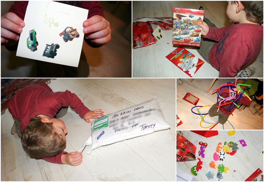 Dün evde çalışıyorum kapı çaldı. Postacı! Keşke Erin evde olsaydı kendi alsaydı bu paketi tabii..Ben aldım paketi, üstünde kocaman MR: ERIN OGUS yazıyor.. açmadım, eve gelince kendi açsın istedim. Mektup arkadaşı zincirimizden değil. Bu blog sayesinde birbirimizi seneler sonra bulduğumuz ilkokul arkadaşımın ilk göz ağrısı Boris’ten..Erin’i uçurdu içinden çıkanlar.. :)Hediye paketlerini bile atmadı! mcqueenleri kesti tek tek onları bile sakladı! 🙂