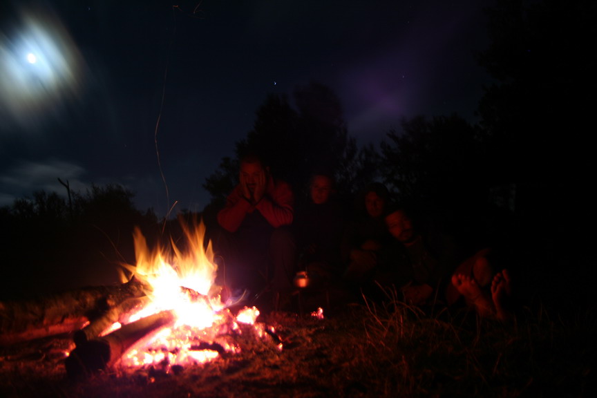 Akşam olunca, el ayak iyice çekilince, güneş yerini aya ve karanlığa bırakınca ne yapacağız diye bir soru vardı kafamda.Erin daha önce hiç ışıksız, kamp ateşli, yıldızlarla dolu ve sadece ayın aydınlattığı sessiz bir yerde kalmamıştı ve bu beni endişelendiriyordu. Hiç endişelendiğim gibi olmadı. Daha önceki çadır deneyimleri, uzun yürüyüşleri, tanıdığı insanlar, Kaan’ın ürettiği oyunlar ile büyük bir adam edası ile sanki hayatında yüzlerce kere kamp yapmışcasına ateşin önünde bizimle oturup, yemek yapıp, yiyip, kavanozlarla müzik yapıp en mükemmelide Alpay ve benim göğüsüme uzanıp yıldızları seyretti. Bu faaliyetin damağımda en çok kalan tadı burası oldu. Erin ve ben ve Alpay uzanmış milyonlarca yıldızlı otelimizde nefes alıyoruz..hayal ederken bile çok güzeldi, şimdi yaşayınca …