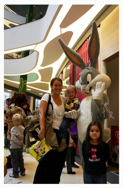 Bugs Bunny, Erin ve ben objektiflere el sallarken Demet Şener’in umarsızca kızını kareden çekmemesine!! kılımı kıpırdatmadan sakince gülümseyebildiğim için :=)))) – Evet evet köşedeki sağda duran kız kendisinin oluyor, Etiler annesiyim ben!! 😀 –