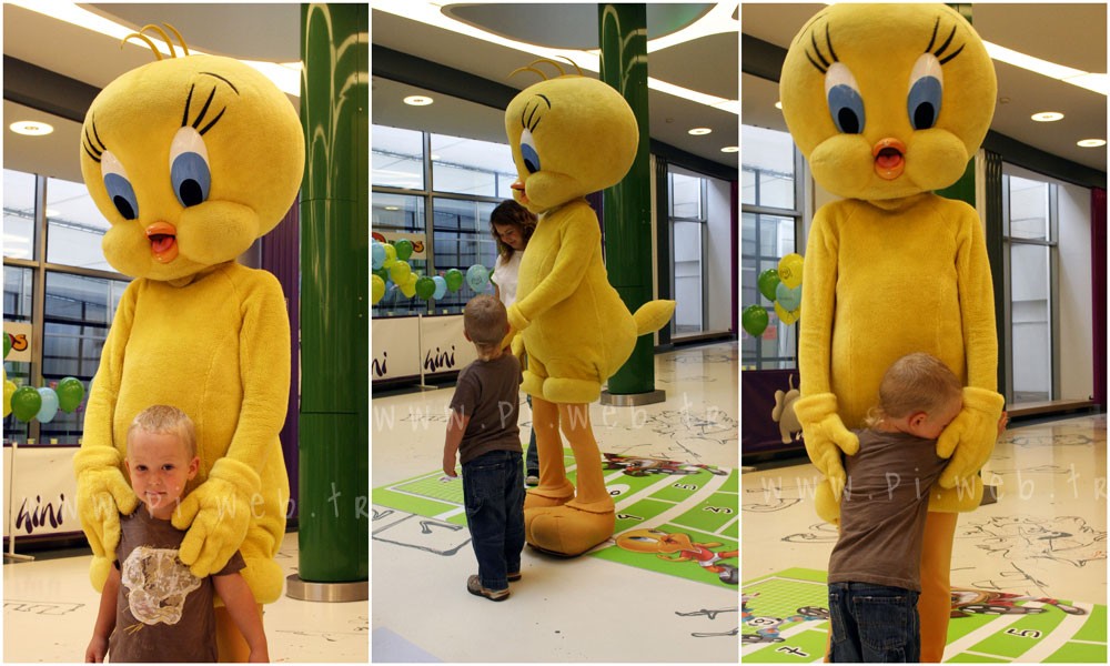 Bir türlü tweety’nin kuyruğundan ayrılmayıp, göğsüne taz, bugsbunny, tweety çıkartmaları yapıştırıp sonrada kocaman kostümlü karakterlere gidip” baak tazz burdasın” diye dert anlatmaya çalışan oğlumun, bütün gece ” bi daaa tüvitii” diye ısrarların karşı koyamayıp, hiç de haz etmediğim AVM’ye ertesi günde gidebilecek ve bundan keyif alabilecek gücü bulabildiğim için, (bu avmler çocukları hiper yapar!! beni bile çığrımdan çıkartıyor gürültü!!)