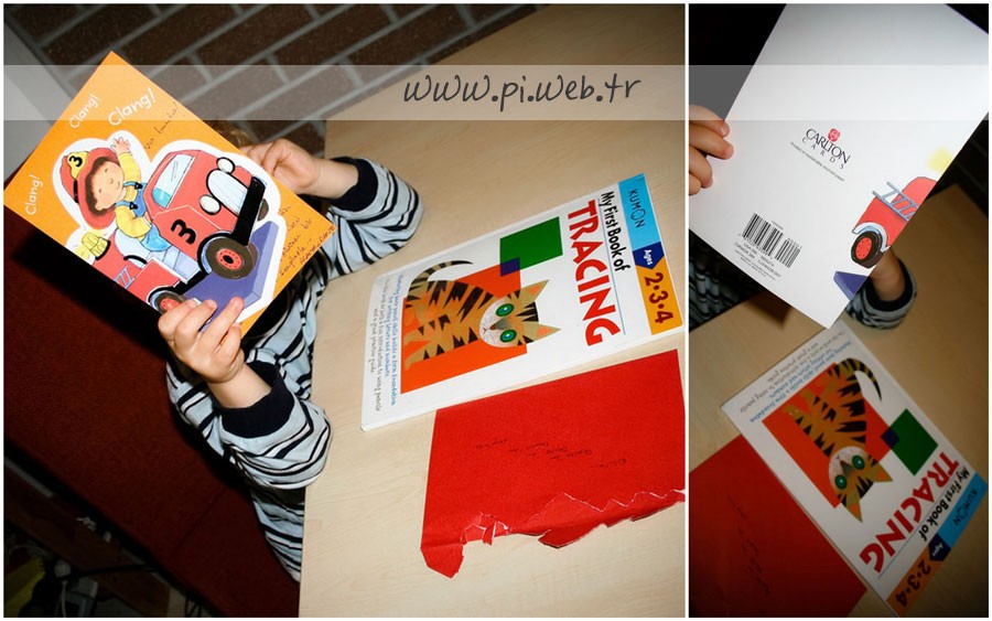 İçinden çıkan karta delirdi öncelikle!! Fotoğrafını çekmemi o istedi.Önce önünü sonra arkada kalan merdiveni hatta!! Her halini belgeleme isteği!!