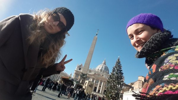 Erin yatakta iyileşmeye çalışırken Alpay the 100 dizisinin 2. sezonunu ortalamayı başardı ben de ördüğüm battaniyeye iyice konsantre oldum. Geceyi 39-40 derece ateşle geçirdikten sonra ertesi sabah düşen ateşle biraz moralim düzeldi lakin insan tanımadığı bir şehirde biraz panikleyebiliyormuş masum bir ateşle bile itiraf ediyorum : çok korktum! Hastane, acil servis, ambulans, taksi numarası hepsi elimde hazırdı!! O kadar yani! Çok şükür ertesi gün düşmüştü ateş ancak odadan çıkmadan dinlenmesini sağladık. Cuma günü kardeşim bizi ziyarete geldi. Alpay Erin ile odada kaldı biz de Tuğçe ile gümüş suyu bulmak için sokaklara dökülüp bu vesile ile San Pietro ve Vatikan bölgesini yürüyerek dolaştık.