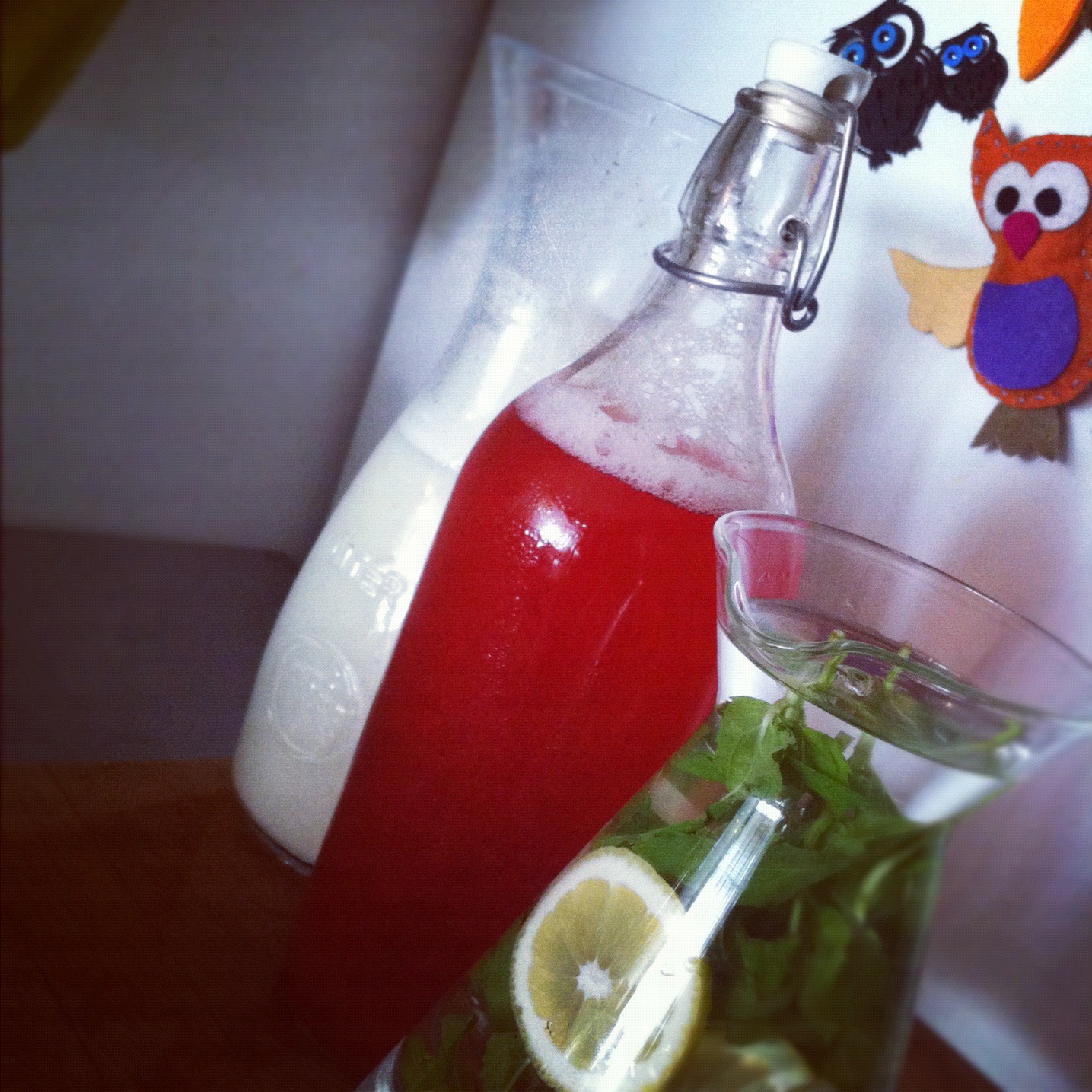 Fotoğraflara geçmeden önce.. bu dönemin kırmızı erikleri.. bolca toplanıp kaynatıldıktan (bir iki karanfil, bir iki kakule, küçük bir parça kabuk tarçın ve kuru zencefil koyarak kaynattım ben 🙂 )  ve soğutulduktan sonra içine hurma suyu ya da bal koyarak ( gerek görmeyebilirsiniz de koymadan da tadı gayet yerinde) harika bir yaz serinletici içecek oluyorlar 😉 Ve votka ile de nefis oluyor! denendi! Hurma suyu aktarlarda satılıyor merak edene.